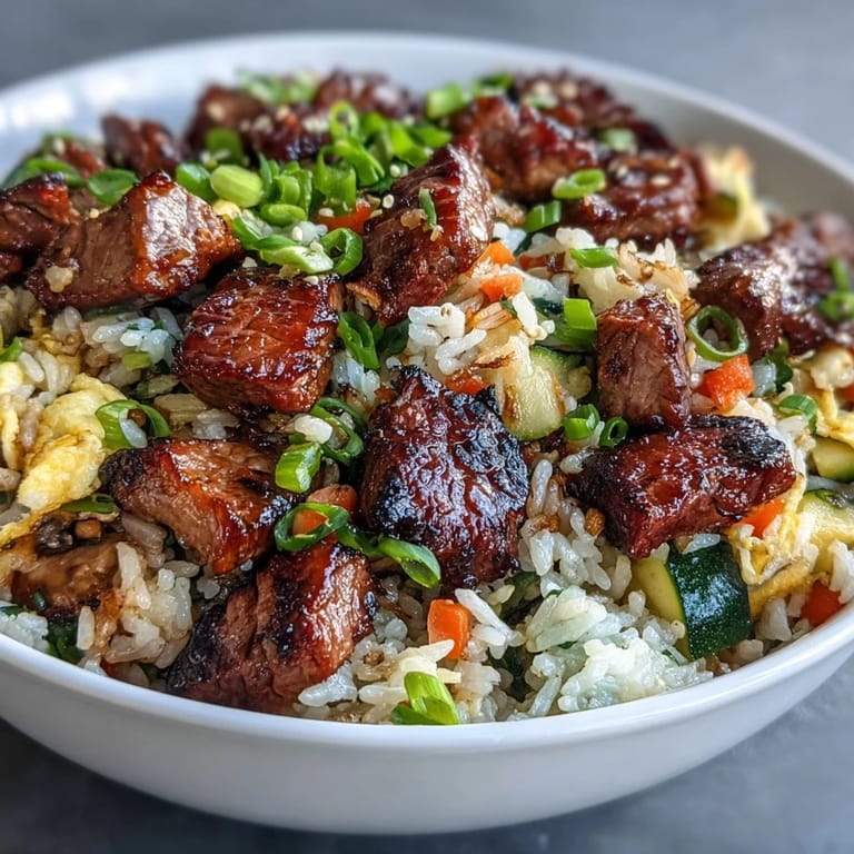 Save My kitchen smelled like a hibachi grill the night I threw together this steak and fried rice on a Tuesday after work, no reservations needed. I'd been craving that sizzling, buttery experience without the restaurant bill or the wait, so I raided my fridge for leftover rice and whatever vegetables looked decent. What started as a practical weeknight solution turned into something I now make on purpose, because somehow the flavors get better when you're not overthinking it. The sesame oil hits differently when you're standing right there at the stove, watching everything come together in one pan. This dish proved that restaurant-quality doesn't require a fancy kitchen or hours of prep.