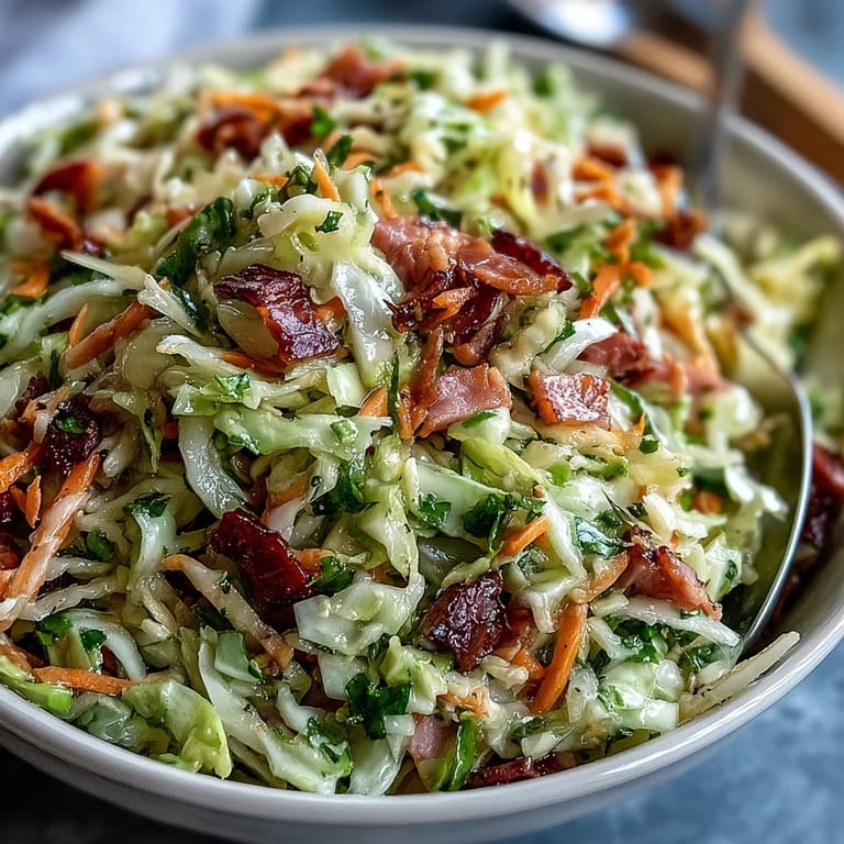 Save My neighbor Greta used to make this every Sunday after church, her kitchen smelling of vinegar and caraway by noon. She'd shred the cabbage with a knife so sharp it never bruised a single leaf, and the ham always came from the same butcher two blocks over. I watched her toss it all together one afternoon, and when I tasted it, I finally understood why her family never left the table with leftovers. It wasn't just coleslaw, it was texture and smoke and tang all living together in one bowl.