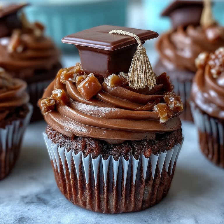 Save Celebrate graduation with these festive, easy-to-make cupcakes topped with adorable edible graduation caps. Perfect for parties and marking this special achievement! These simple cupcakes combine classic vanilla flavors with a creamy buttercream frosting, all crowned with charming chocolate cap toppers that add a playful and celebratory touch.