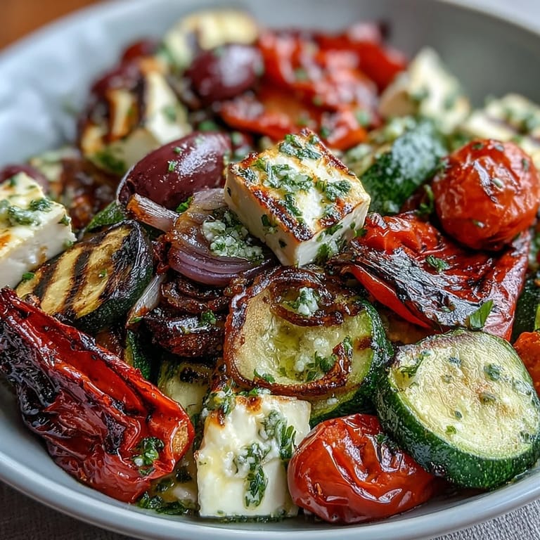Save There's something magical about the moment you pull a sheet of roasted vegetables from the oven and the kitchen fills with that deep, caramelized aroma—it's nothing like raw salad greens. My first roasted Greek salad happened by accident when I had leftover vegetables and a craving for something warm on a cool evening, and I've never looked back since. The heat brings out sweetness you never knew was hiding in a bell pepper, while the feta gets slightly creamy from the warmth. This isn't your grandmother's Greek salad sitting in a plastic container; it's vibrant, unexpected, and tastes like you actually care.