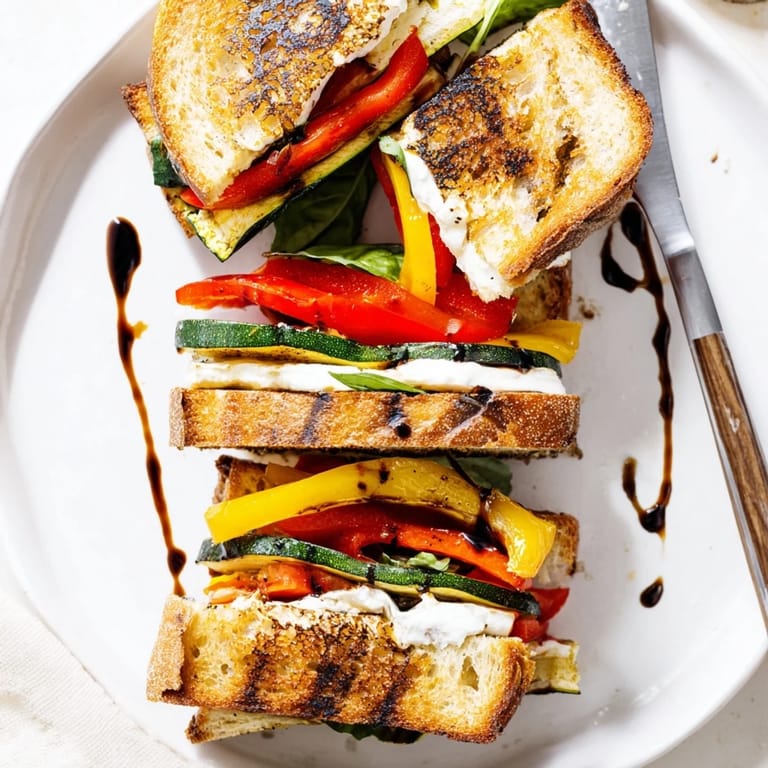 Save The smell of roasting peppers always pulls me back to my first apartment kitchen, where I learned that a grilled cheese could be something transcendent. I stumbled on this combination by accident one Tuesday when I had leftover roasted veggies from the night before and too much fresh mozzarella threatening to go bad. That first bite changed everything about how I thought about sandwiches forever.