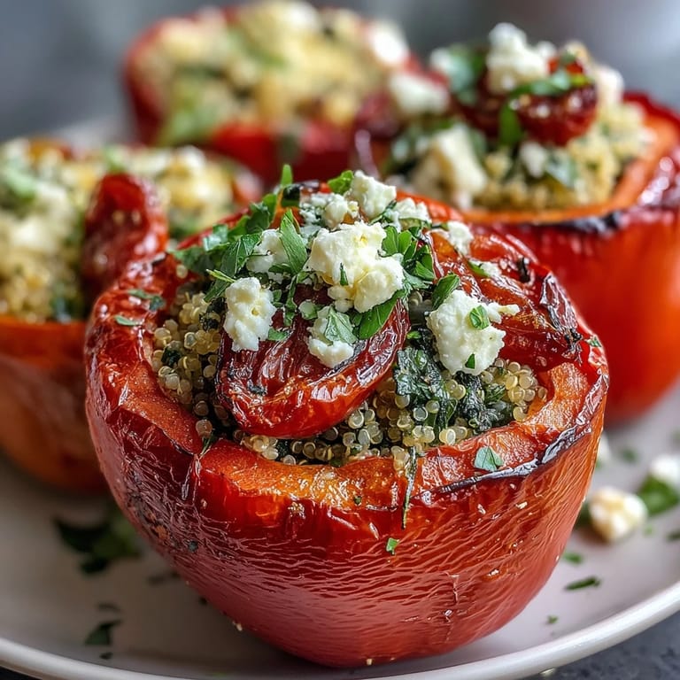 Save There's something deeply satisfying about a dish that brings together vibrant colors, wholesome ingredients, and Mediterranean flavors in one beautiful package. These stuffed bell peppers are filled with fluffy quinoa, fresh herbs, and tender vegetables, creating a meal that's as nourishing as it is delicious. Whether you're looking for a wholesome weeknight dinner or a show-stopping vegetarian main course, this recipe delivers on both flavor and nutrition. The peppers bake until tender, their natural sweetness complementing the savory, herb-infused filling perfectly.