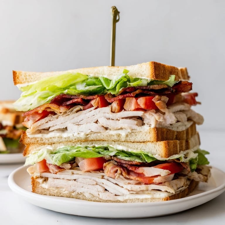 Save My neighbor knocked on my kitchen door one afternoon with leftover turkey from her Sunday roast, asking if I knew what to do with it. I'd been standing there staring at my sad deli counter turkey for weeks, and suddenly I remembered the triple-decker clubs my dad used to order at diners—towering things that required both hands and optimism. That memory sparked something, and within minutes I was toasting bread and frying bacon, reconstructing a sandwich I hadn't made since childhood. The smell of butter and toast filled the kitchen like muscle memory, and I knew I had to get this right.